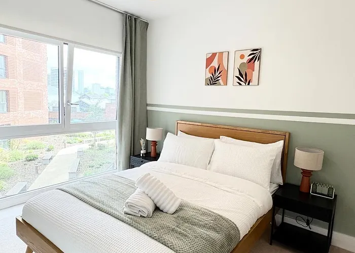 Spacious Stylish Luxury 1 Bed Flat At The Heart Of Birmingham-Birmingham City Centre -Free Parking is located 25 minutes' walk from the Selfridges Building and 2.6 km from the Upscale Selfridges Department Store. Wi-Fi is available for guests' business or leisure needs.